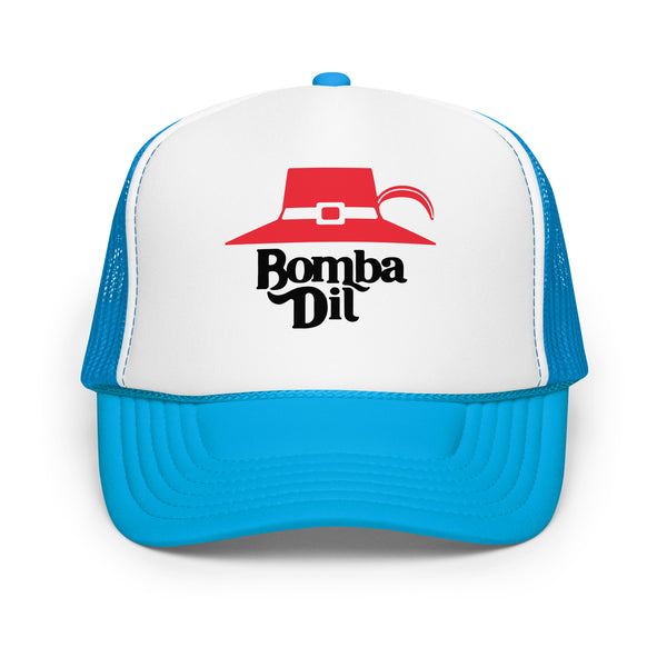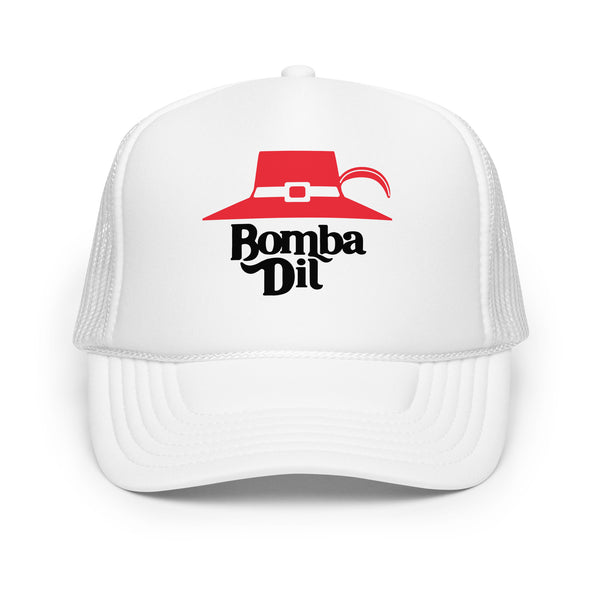 This old school printed trucker hat pays tribute to Tom B., the most old school of all!