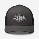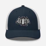 All dressed up but probably staying in with this fearless guardian of the perpetual naps. Top off the look with the batty trucker-style hat!